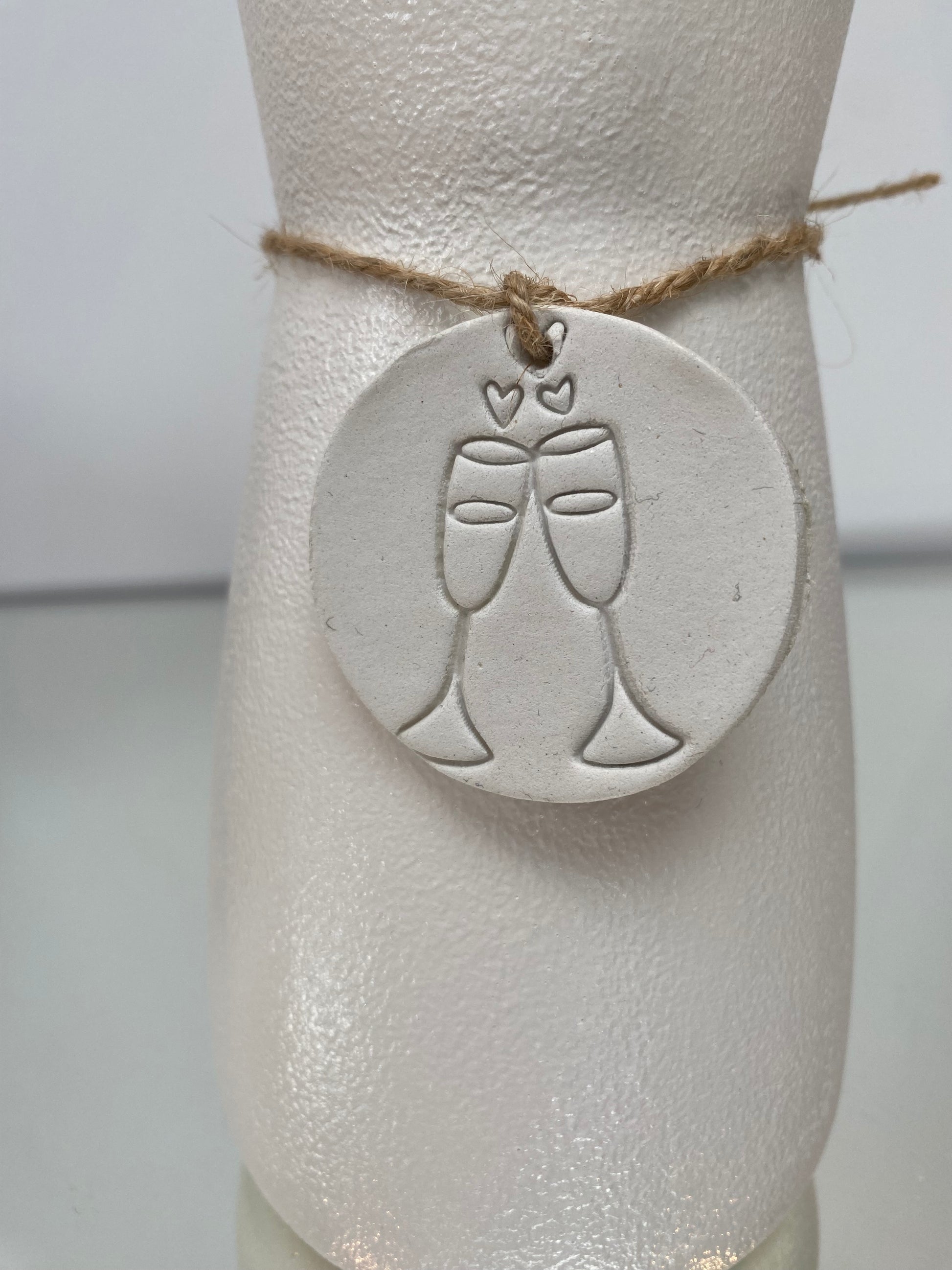 This congratulations tag is made from clay, varnished with waterproof varnish and tied with natural twine, the perfect add on to our vases.