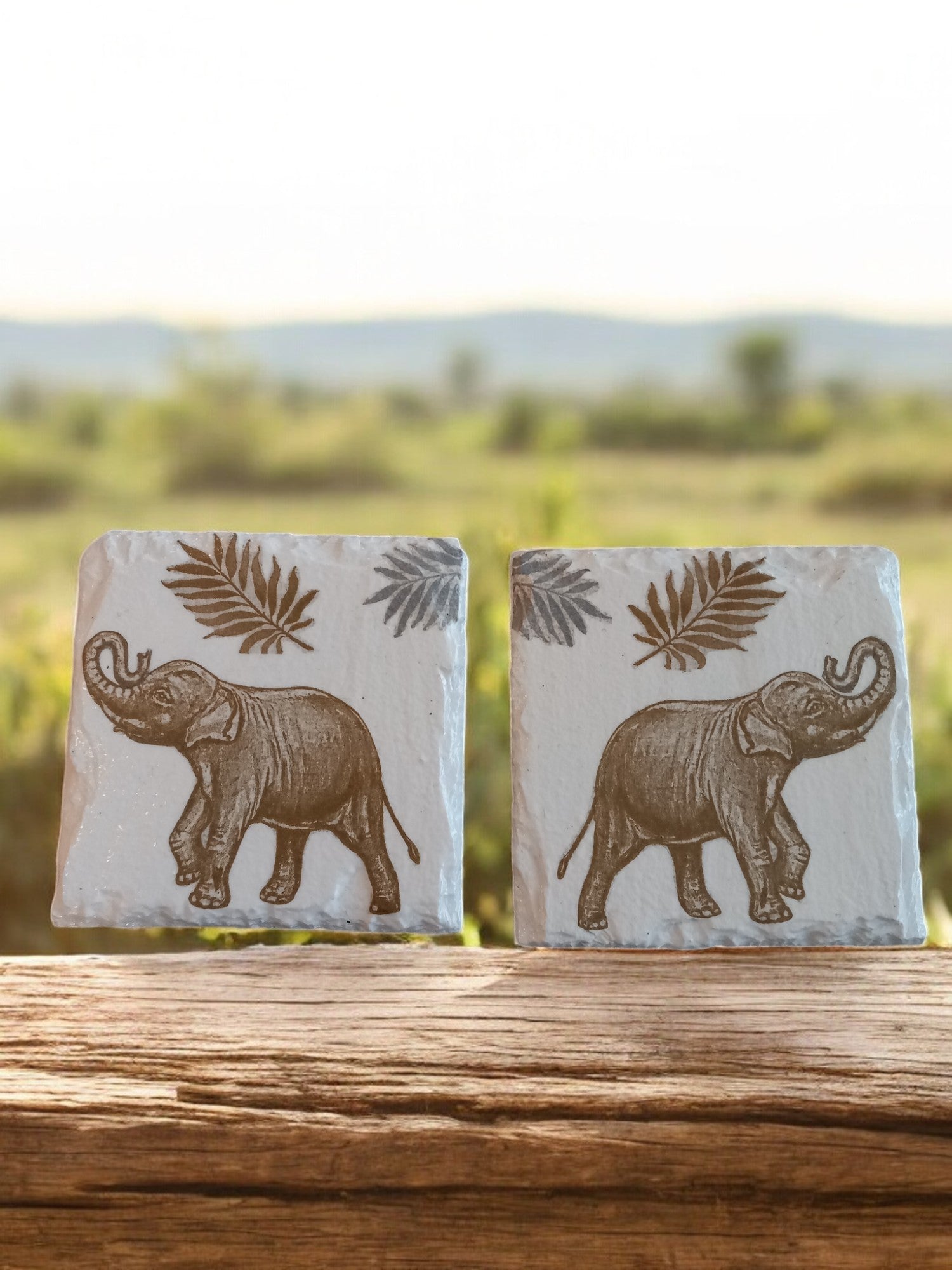 These slate coasters have been decoupaged with a beautiful Elephant design, finished with heat resistant varnish, packaged in bubble wrap and tissue paper tied with a clay heart and natural twine, the perfect gift for a loved one.